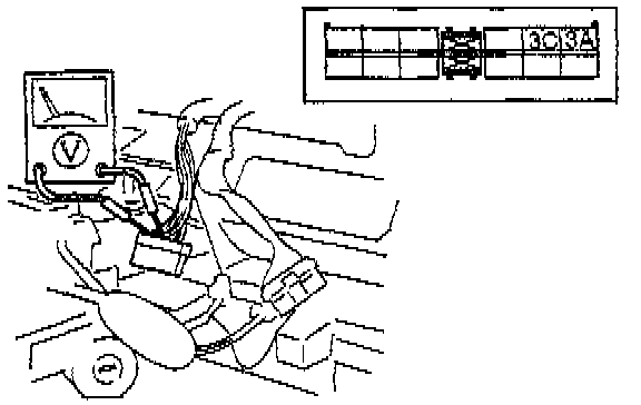 5. Measure the voltage between terminals 3A and 3C of the vehicle speedometer sensor connector (harness side) while the rear wheels are turning slowly.