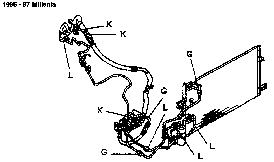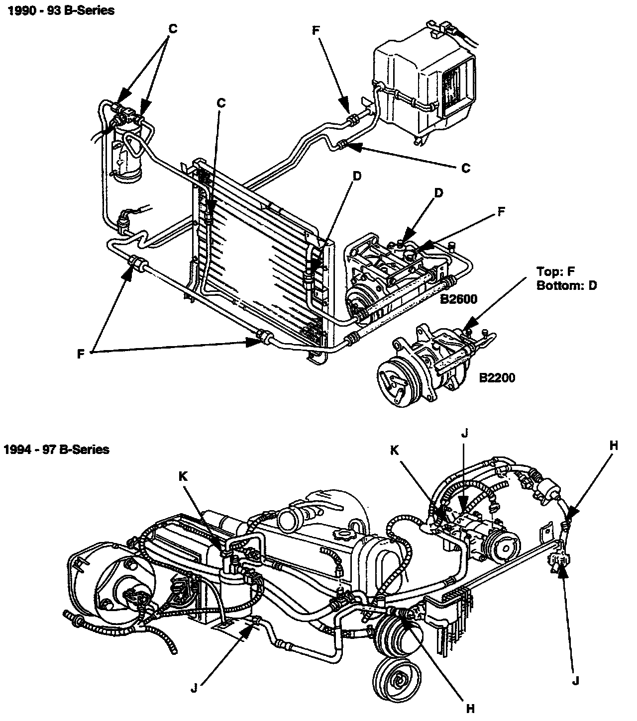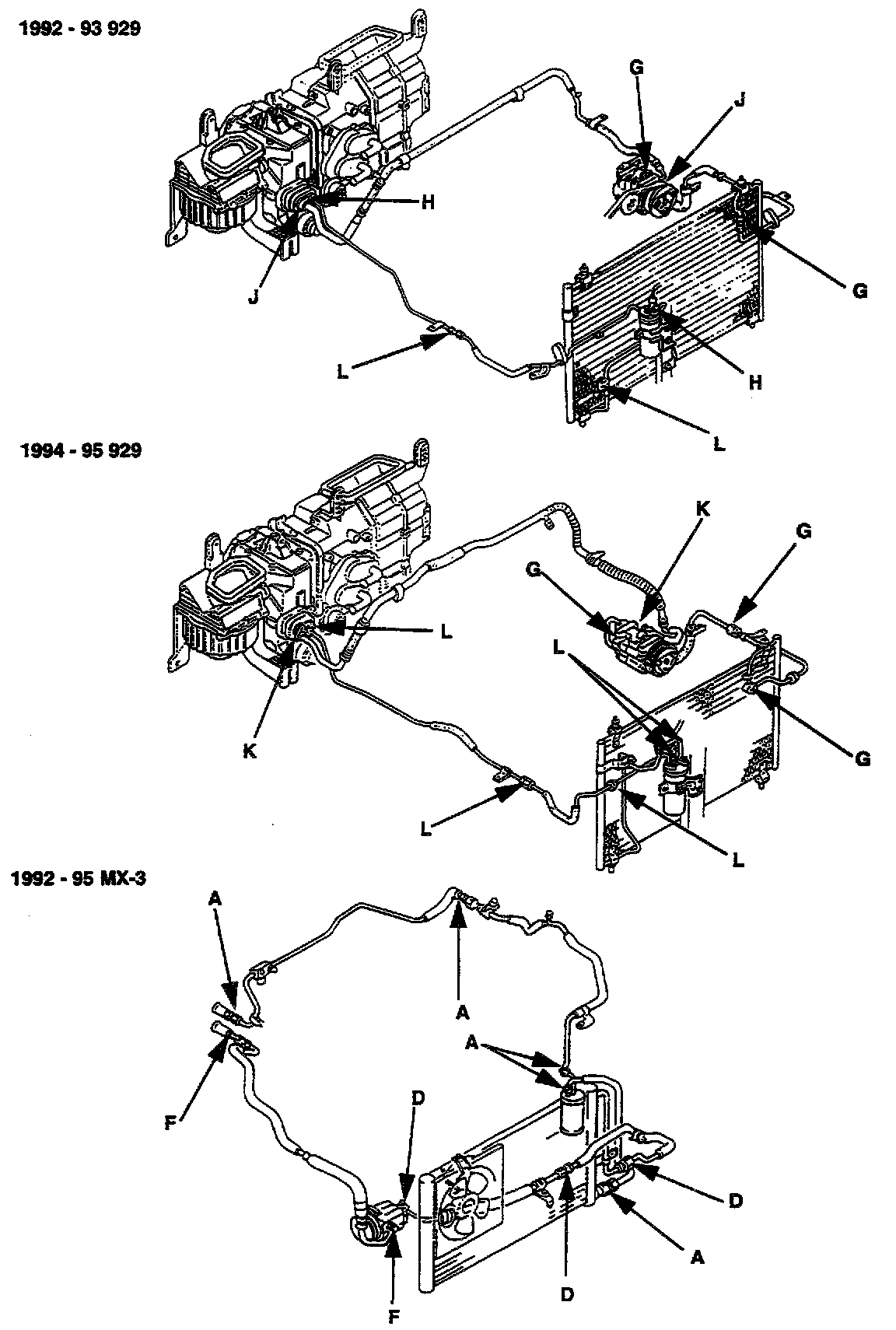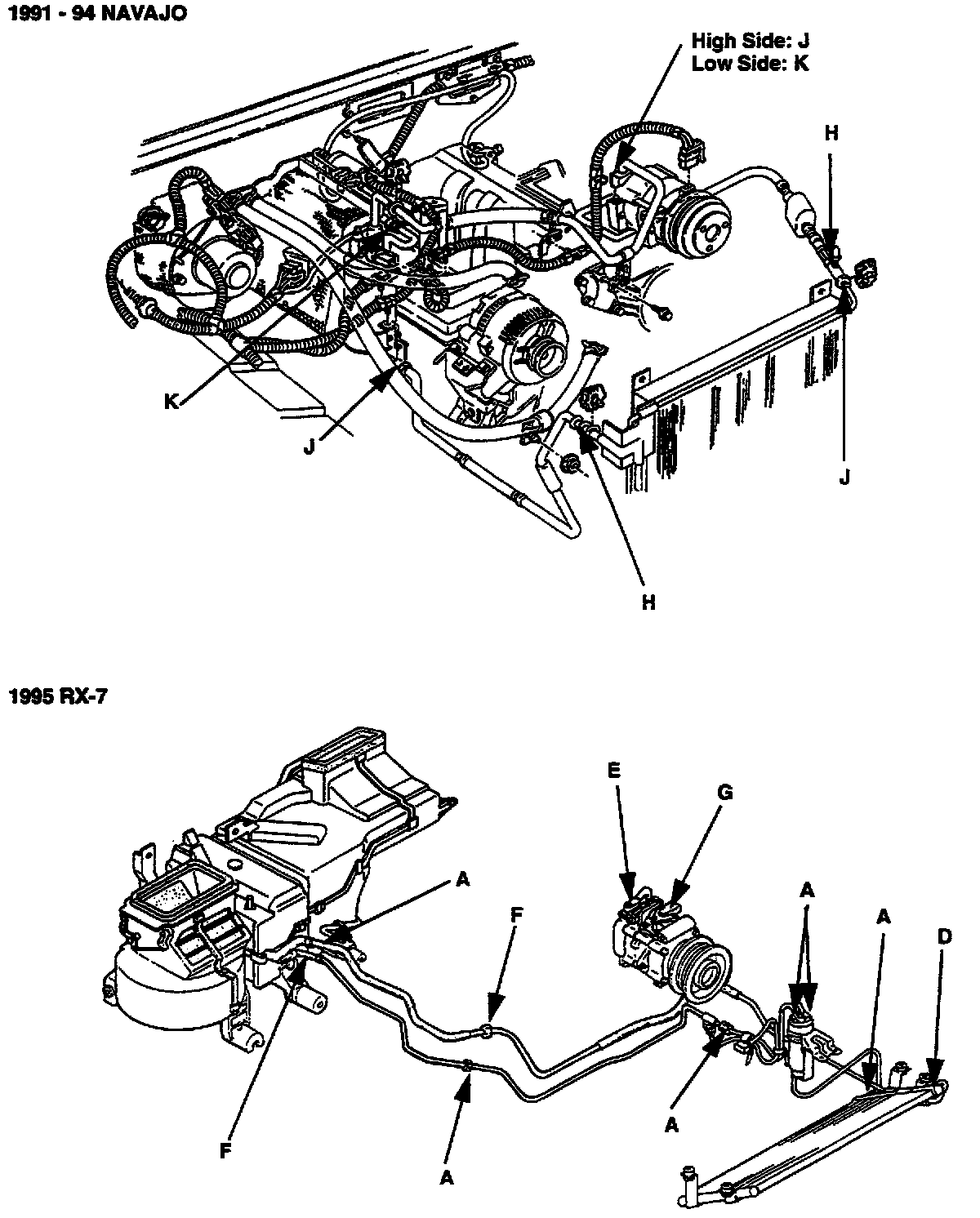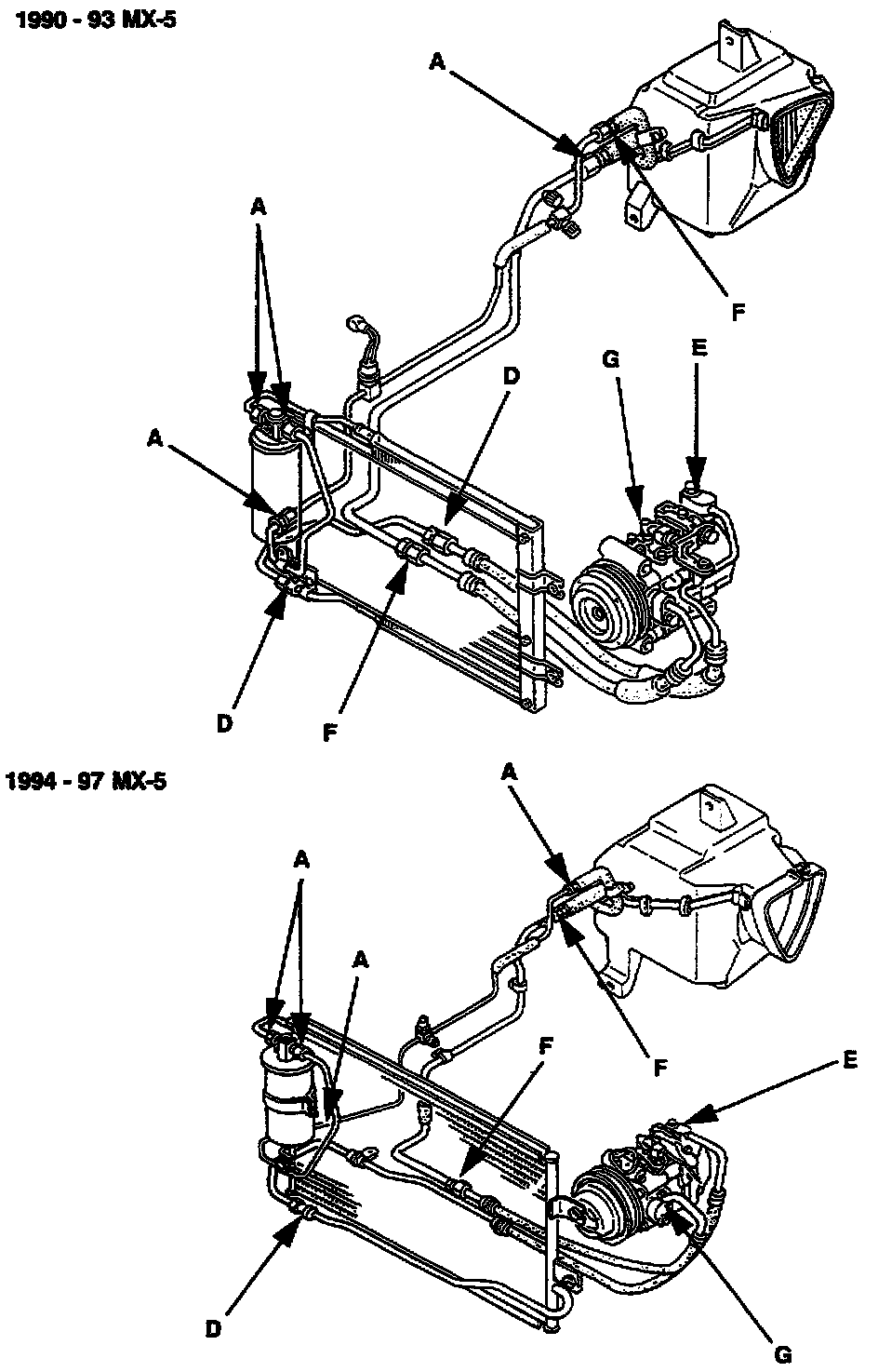 Refer to the appropriate illustration as shown and the chart when replacing A/C system 0-rings. These 0-rings are designed for use in both R-12 and R-134a systems.