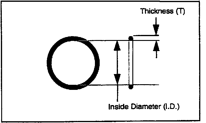 The illustration shown indicates where the 0-ring must be measured to determine diameter and thickness. Use this information and the chart above to identify the proper part if the 0-rings are accidentally mixed.
