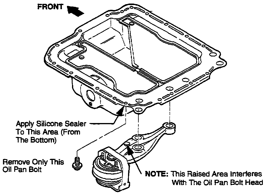 3. Apply silicone sealer to the bolt hole and pan area.
