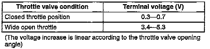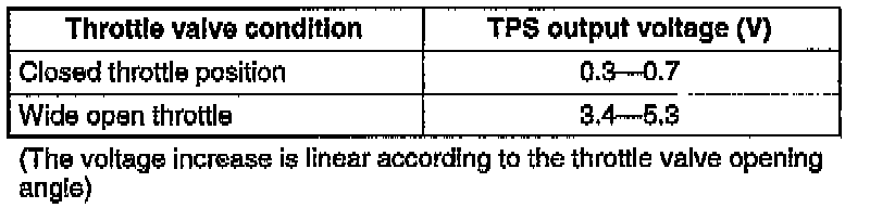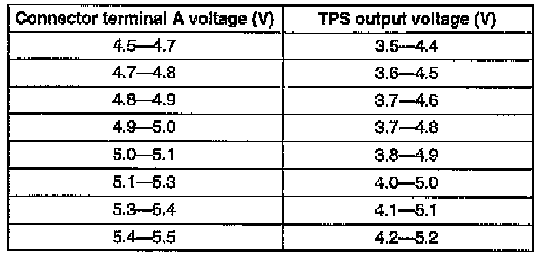 12. Wide open throttle and verify that the TPS terminal volt- age are within the specification.