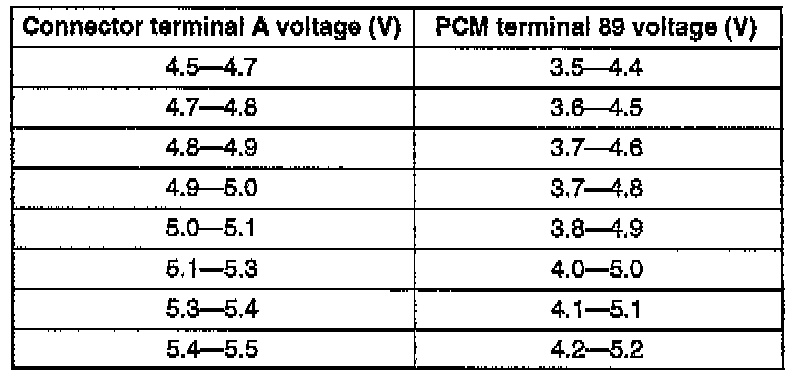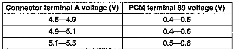 3. Measure voltage at PCM terminal 89 under the following conditions.