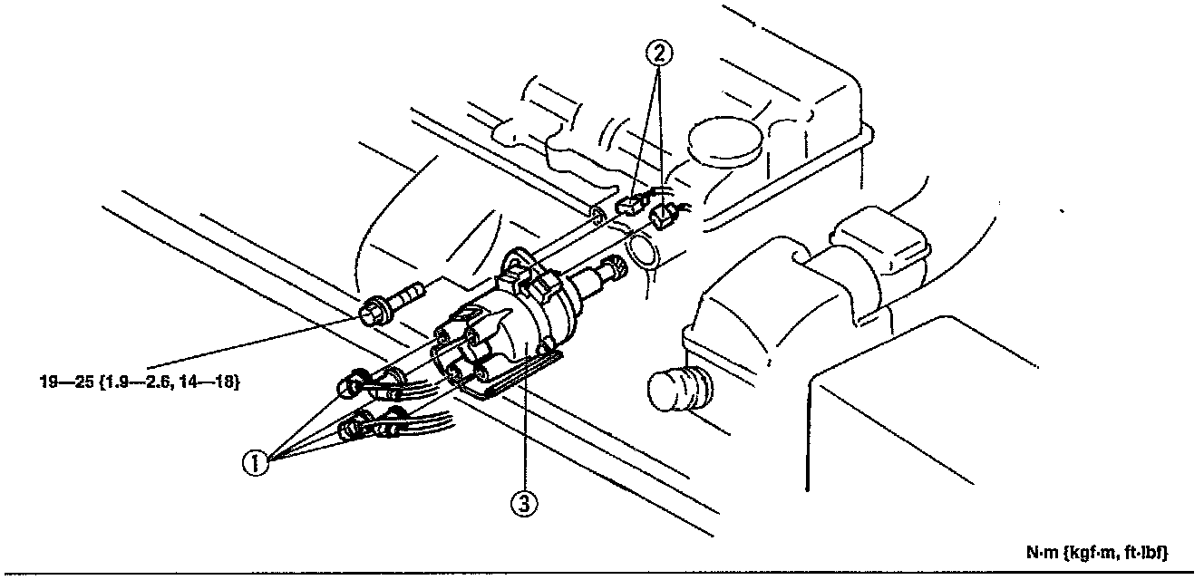 2. Install the distributor and connect the high-tension leads and distributor connector.