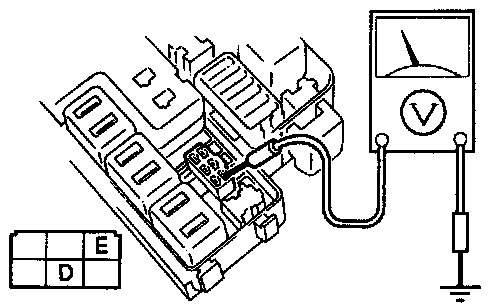 3. Measure the voltage at the following terminals of the A/C relay connector.