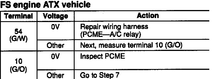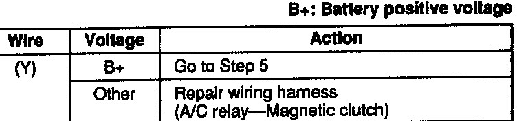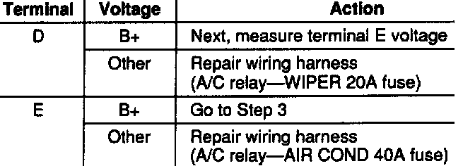 2. If correct, reinstall the A/C relay and go to Step 4.