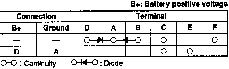1. Apply battery positive voltage and check for continuity between the terminals of the A/C relay.