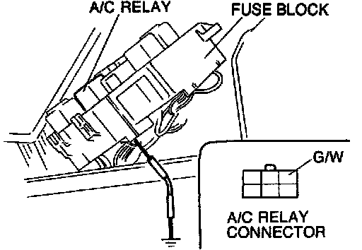 3. Connect a jumper wire between terminal wire (G/W) of the A/C relay connector and ground.