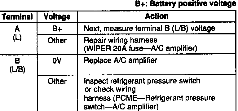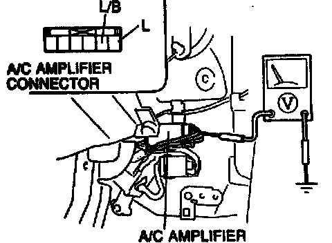 Measure the voltage at the following terminals of the A/C amplifier. Service and Repair Testing and Inspection