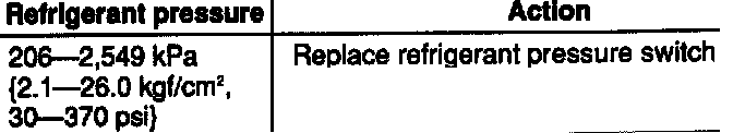 7. If the refrigerant pressure switch is broken or there is abnormal pressure in the refrigerant system, the pressure will remain open and not allow current to flow to the magnetic clutch and condenser fan.