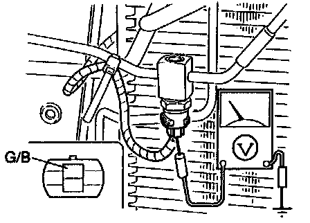 2. Measure the voltage at following terminal wire of the refrigerant pressure switch connector.