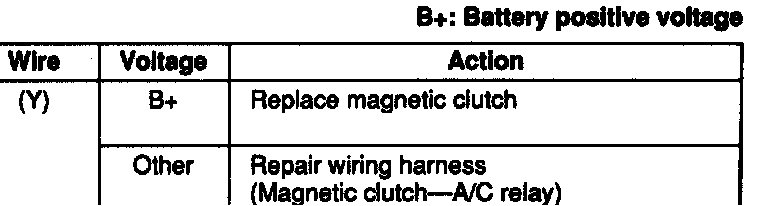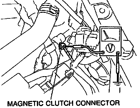 Measure the voltage at following terminal wire of the magnetic clutch connector.