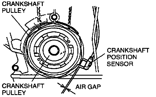2. Measure the air gap between the crankshaft pulley and the crankshaft position sensor by using a feeler gauge.