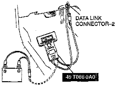 1. In the passenger compartment, connect the SST to the data link connector-2 as shown in the figure.