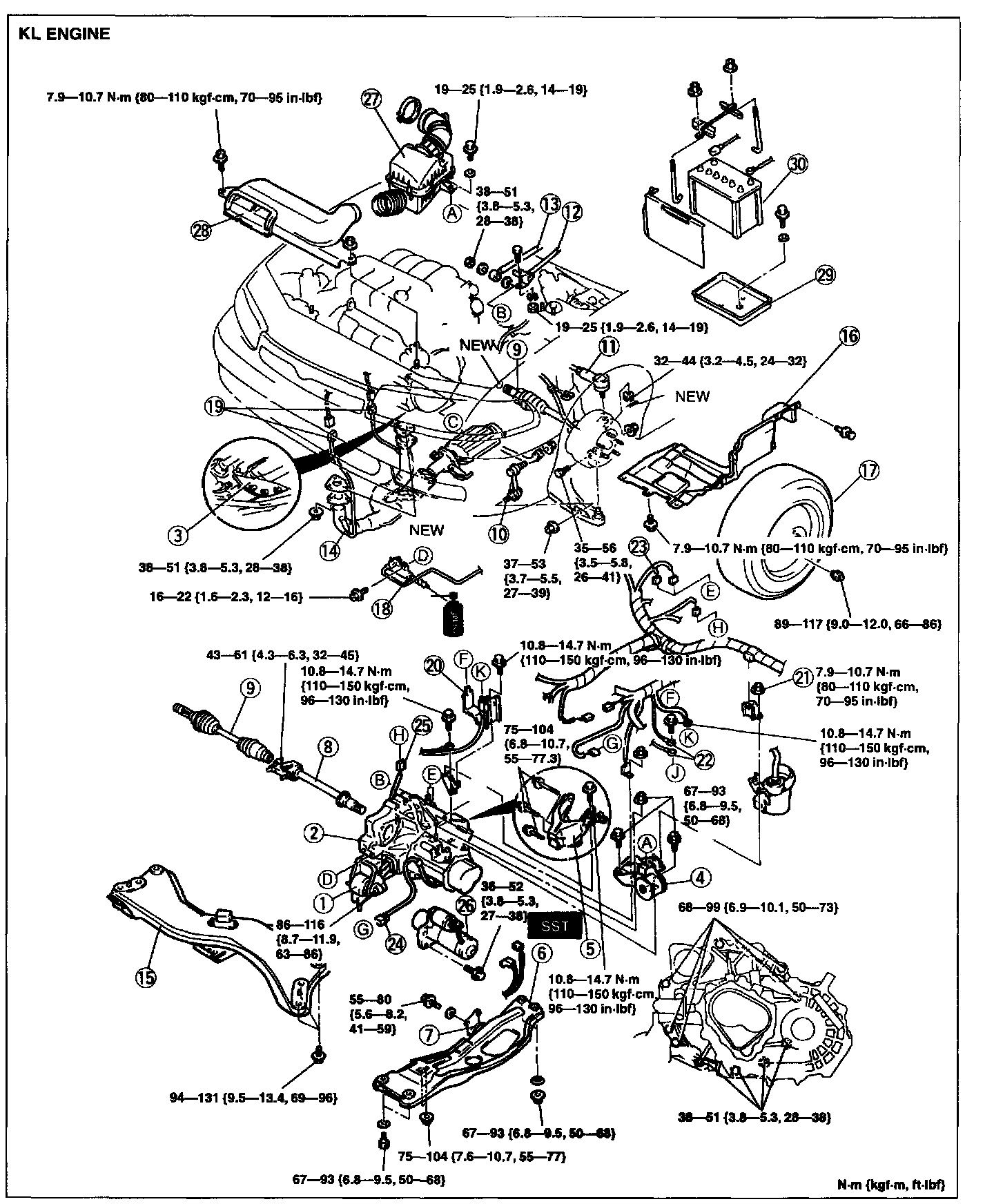 KL: 68-99 N.m (6.9-10.1 kgf.m, 50-73 ft.lbf)