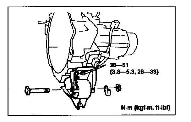 Tightening torque: 38-51 N.m (3.8-5.3 kgf.m, 28-38 ft.lbf)
