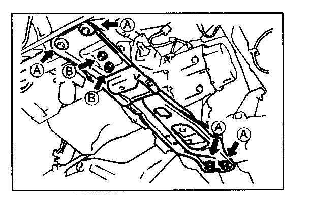 1. Use the SST (engine support) to make sure the transaxle bolt holes and No.1 engine mount meet evenly.