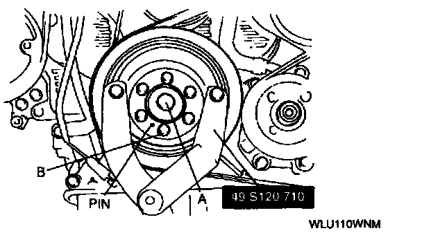 4. Tighten pulley bolts B. then crankshaft pulley bolt A.