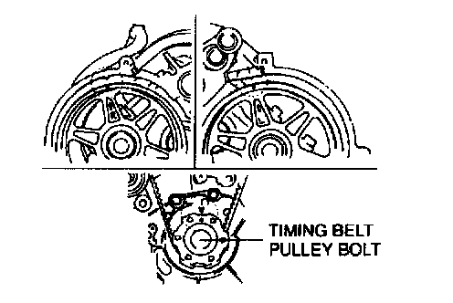 1. Install the timing belt pulley bolt into the crankshaft.