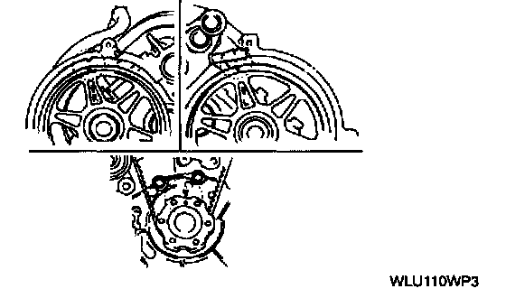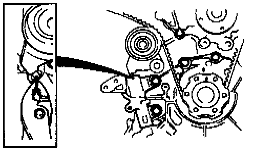 7. Verify that all timing marks are correctly aligned. If not, remove the timing belt and repeat from timing belt auto tensioner installation.