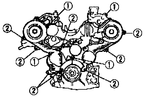 2. Install the timing belt covers (RH, LH) and tighten the bolts in the order shown.