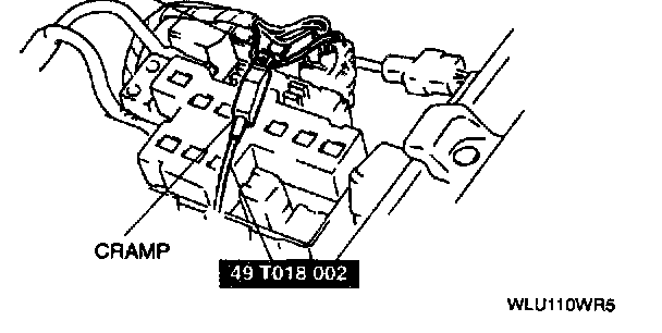 5. Connect the SST (timing light) to the ignition timing inspecting harness with the arrow on its cramp facing the connector.