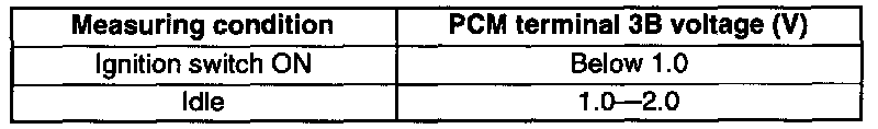 - If not as specified, inspect the harness and connector between the mass air flow sensor and the PCM terminal.