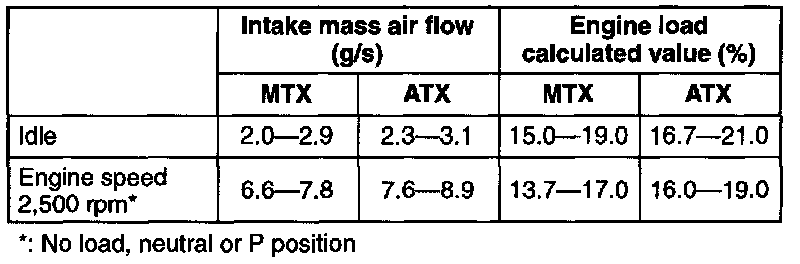 NOTE: The scan tool shows the mass air flow rate and load value.