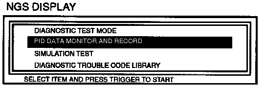 - Select the PID/DATA MONITOR AND RECORD function.