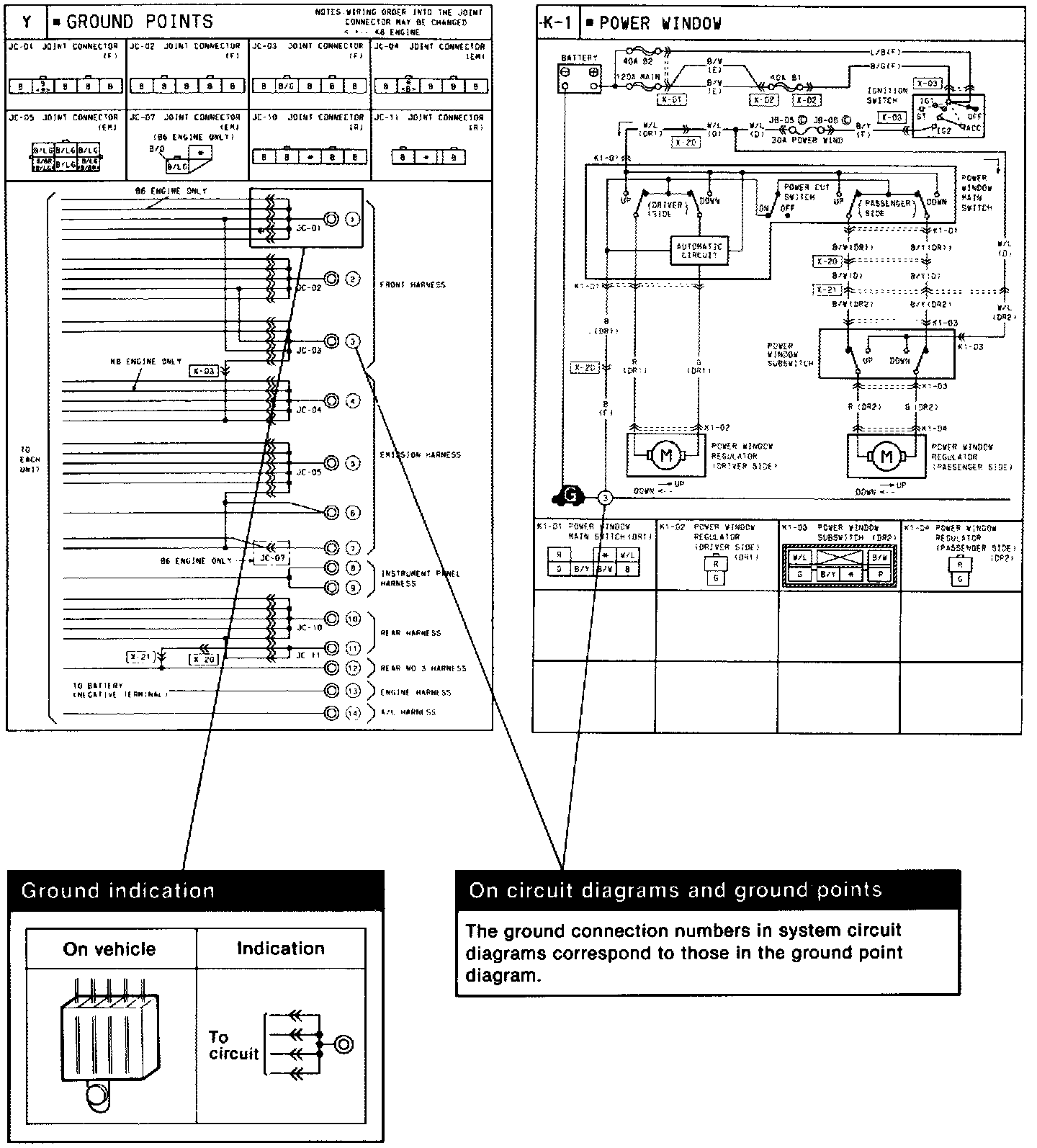 This shows ground points of the harness.