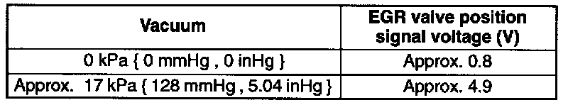 - If not as specified, inspect the harness and connector between the EGR valve position sensor and the PCM terminal.