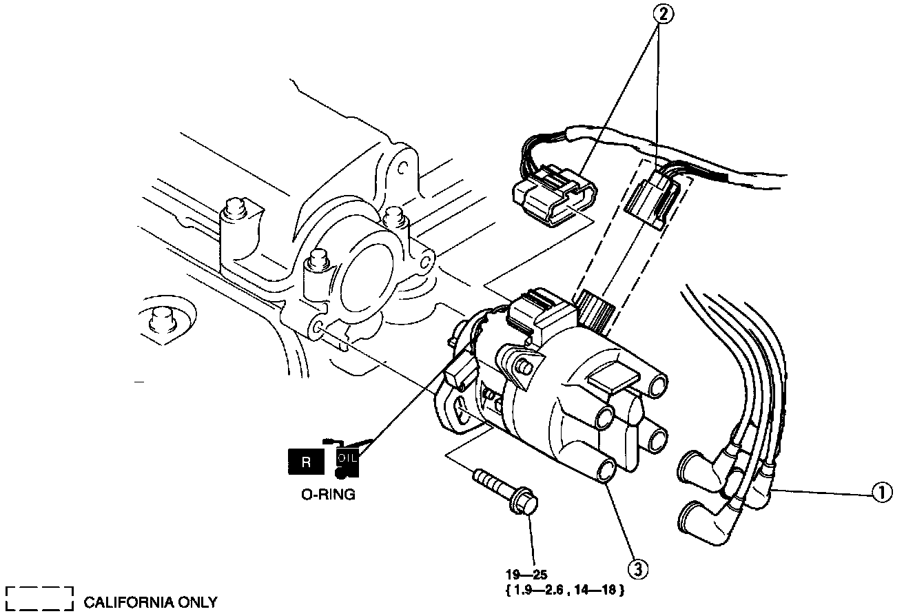 NOTE: The distributor incorporates camshaft position sensor, ignition control module, and ignition coil.