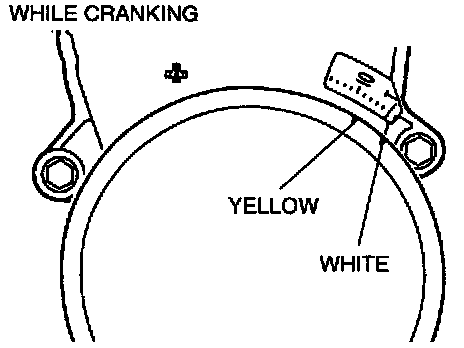 3. Verify that the timing mark (yellow) on the crankshaft pulley and the mark on the timing belt cover are aligned.