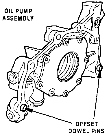 When replaceing the oil pump on the above models be sure to use an oil pump kit. This kit consists of an oil pump with offset dowel pins already installed. These offset pins allow the oil pump to align properly with the engine block.