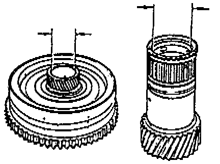 1. Measure the small sun gear and sun gear drum inner diameters. Inner diameter of the small sun gear is 24.0 mm (0.945 inch) maximum and the sun gear drum is 33.4 mm (1.31 inch) maximum.
