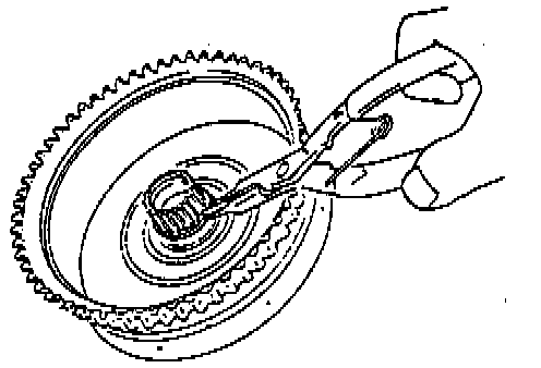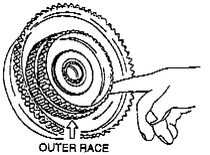 9. Hold the one-way clutch outer race. Verify that the inner race rotates smoothly in the counterclockwise direction only. If the one-way clutch inner race turns only clockwise, the spring cage could be installed upside down.