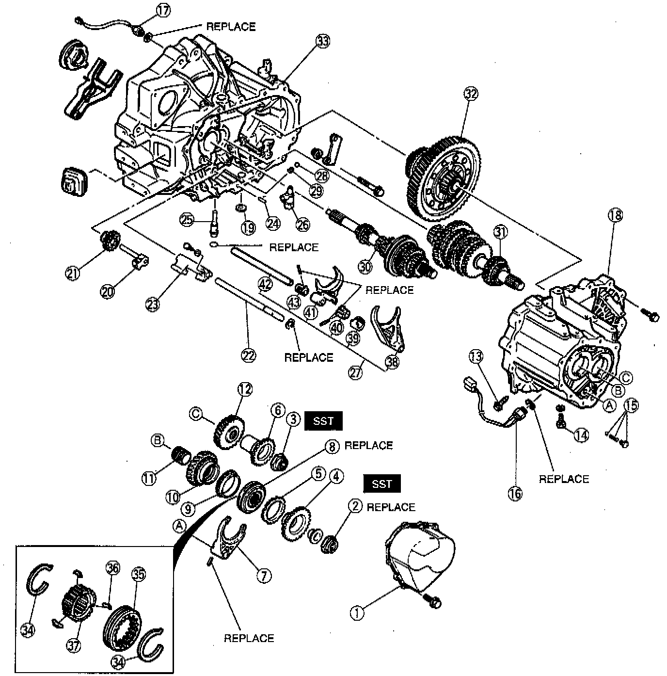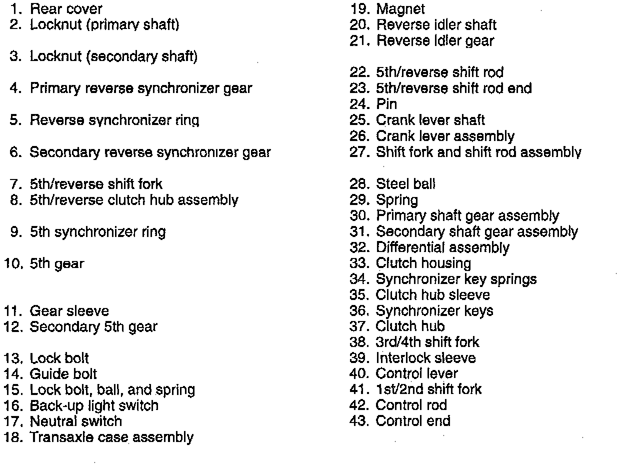 1. Measure the 5th gear thrust clearance, referring to preinspection. Testing and Inspection