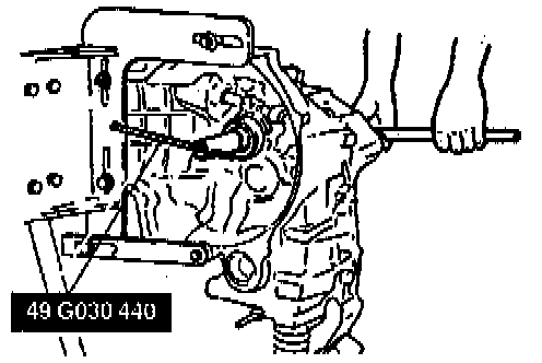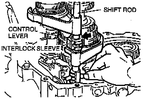 1. Align the ends of the interlock sleeve and of the control lever (arrow). Turn the shift rod counterclockwise.