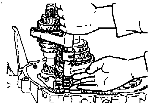 2. While holding the 1st/2nd shift fork with one hand and the 3rd/4th shift fork with the other, raise them both at the same time and shift each of the clutch hub sleeves.