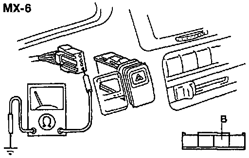 2. Check for continuity between terminal B (B) of the hazard warning switch connector and ground.