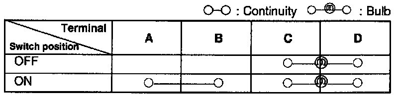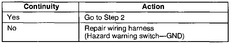 1. Check for continuity between the terminals of the hazard warning switch.