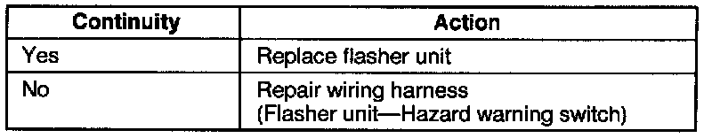 3. If not as specified, replace the hazard warning switch.