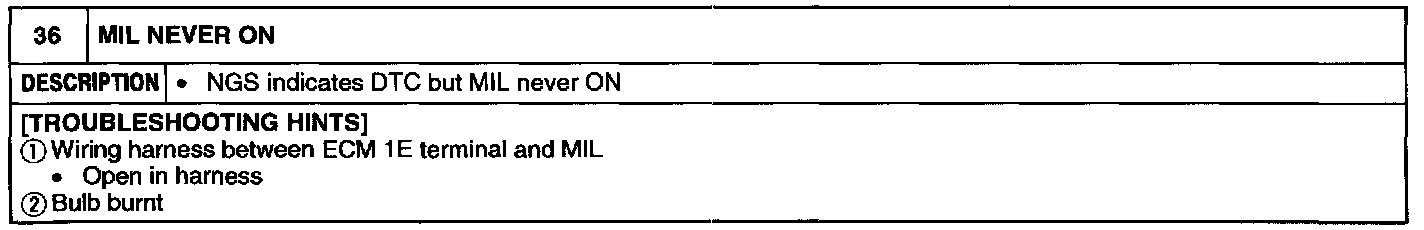 # 36 - Malfunction Indicator Light (MIL) Never On: