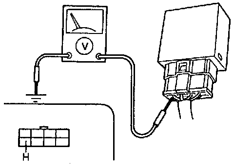 Measure the voltage at terminal H (BR/W) of the flasher unit connector.