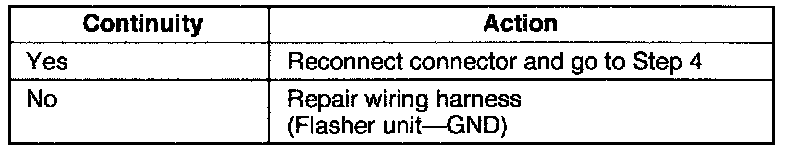 2. Check for continuity between terminal A (B) of the flasher unit connector and ground.