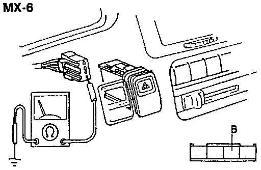 2. Check for continuity between terminal B (B) of the hazard warning switch connector and ground.