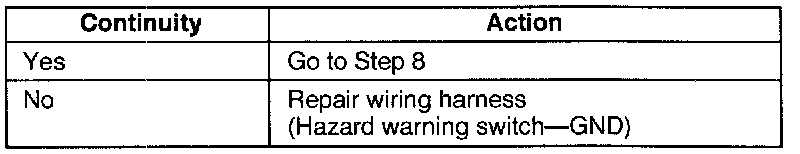 3. If not as specified, replace the hazard warning switch.
