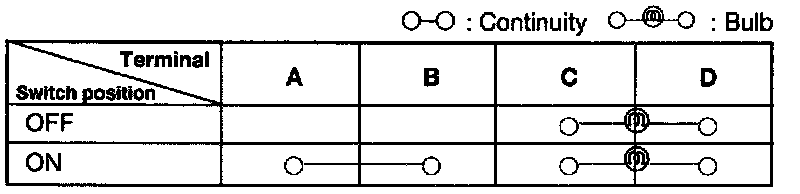 1. Check for continuity between the terminals of the hazard warning switch.