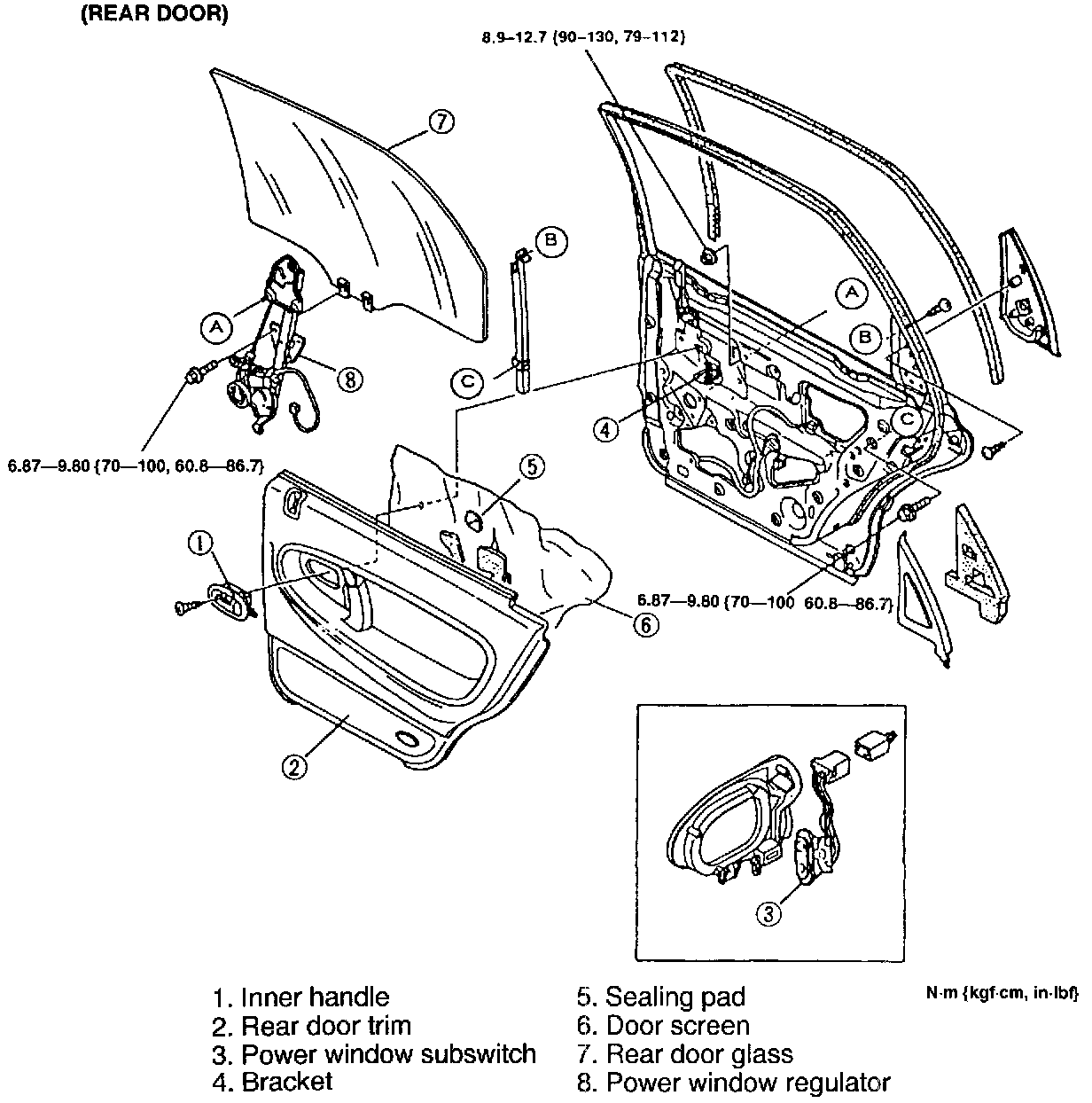 1. Raise the rear edge of door glass about 50 mm {2.0 in} from the fully lowered position.