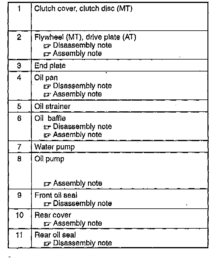 Disassemble in the order indicated in the table.