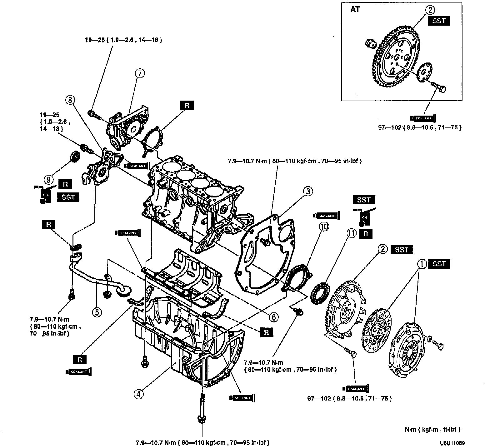 Install the SST and tighten the flex plate bolts to 97 - 102 Nm (71 - 75 ft. lbs.).